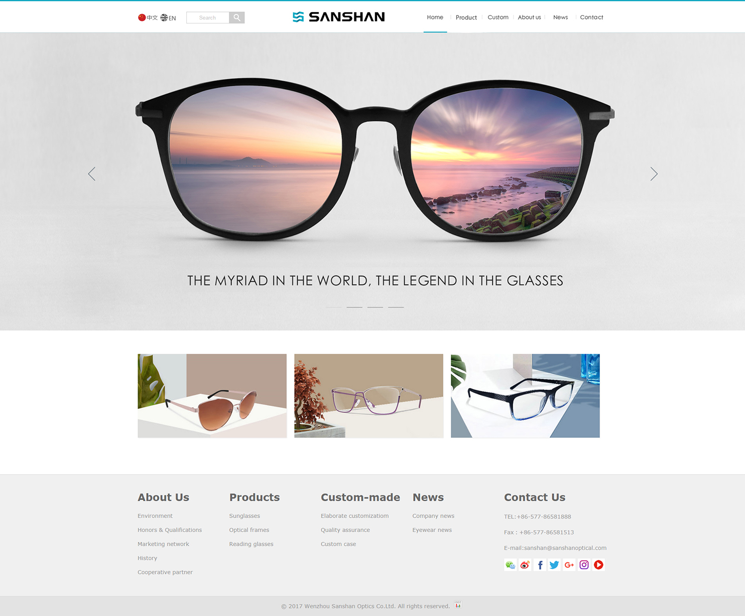 溫州三杉光學(xué)有限公司成立于1999年,是一家專業(yè)從事光學(xué)及太陽眼鏡設(shè)計、開發(fā)、制造和銷售的大型民營企業(yè)。