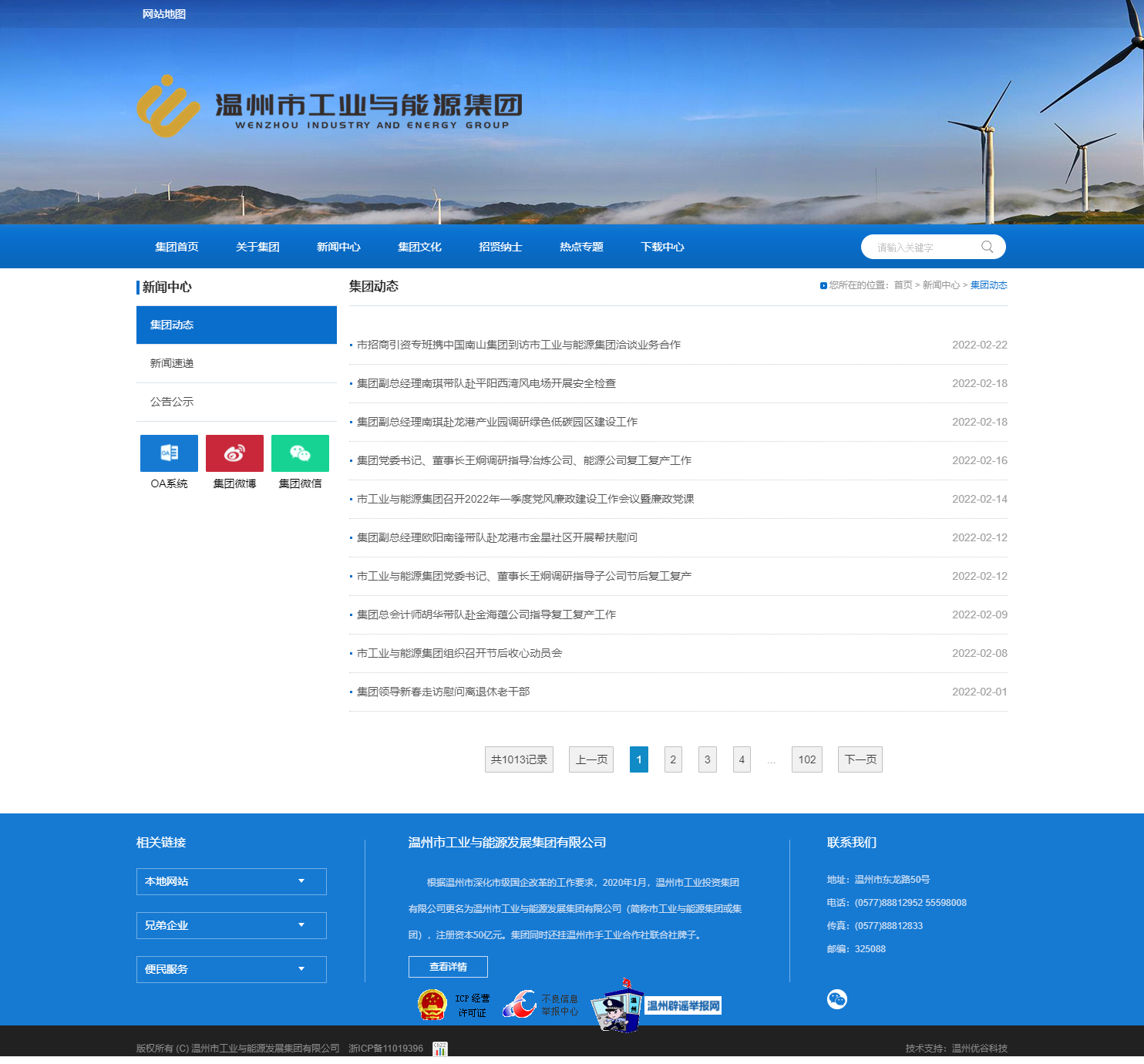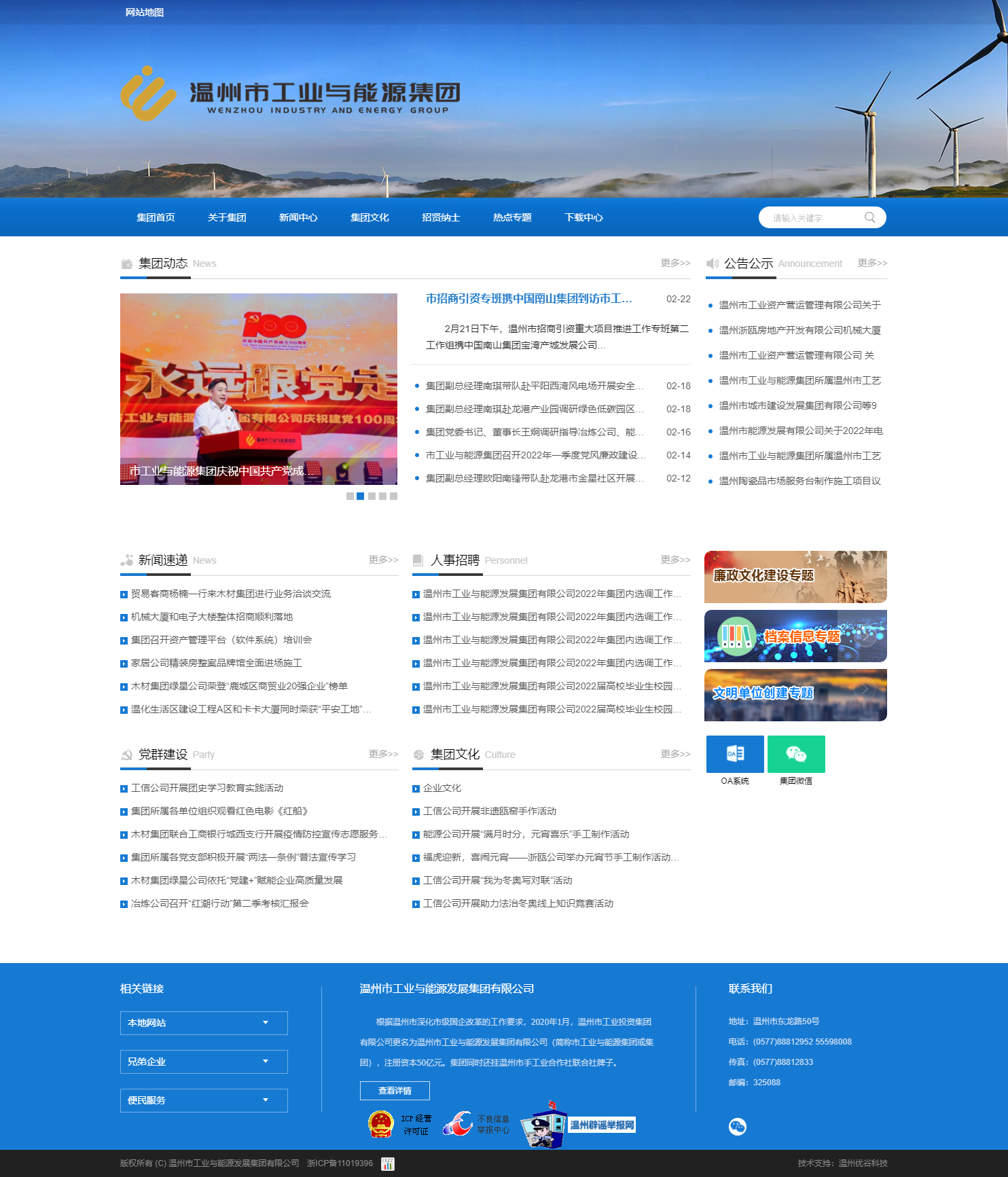 2020年1月,溫州市啟動國有企業深化改革,原溫州市工業投資集團優化組建為現在的溫州市工業與能源集團,為溫州市十大國有集團之一,注冊資本50億元。集團同時還掛溫州市手工業合作社聯合社牌子。